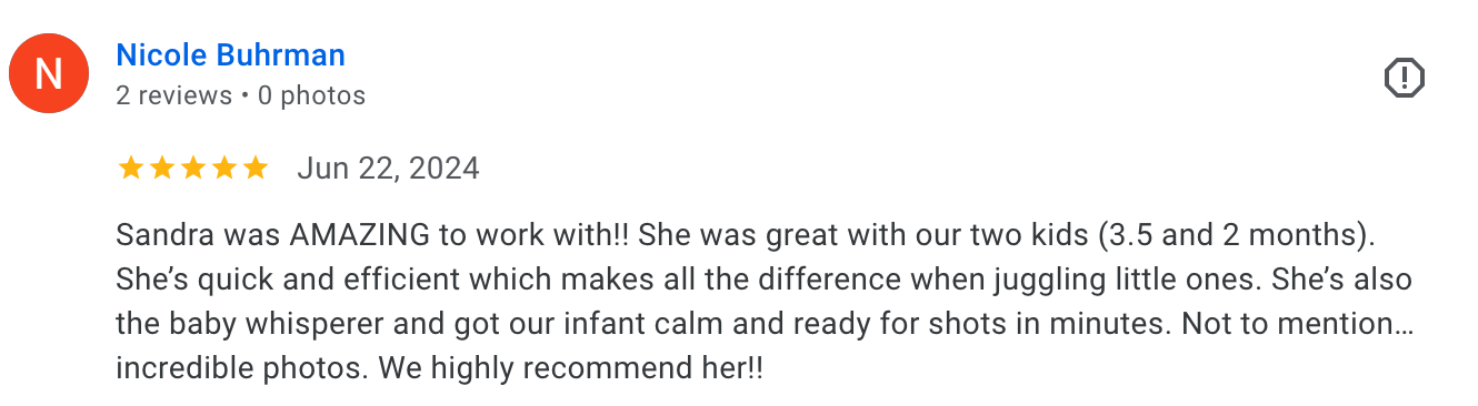 “We have an infant and toddler and she does such an amazing job creating a fun environment for them — and it results in amazing photos!”